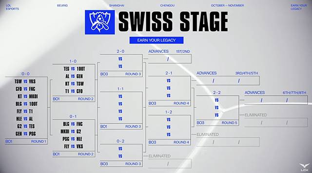 스위스 스테이지 방식으로 벌어지는 월즈 16강은 3승을 먼저 하면 8강으로 진출하며, 3패를 하면 탈락하는 방식이다.