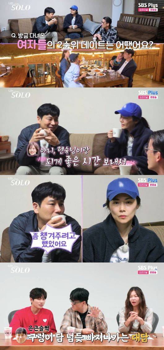 영수는 “나중에 방송으로 보면 될 것 같은데”라고 답을 회피했고, 영숙은 “듣기로는 일대일 데이트가 됐다던데”라고 물었다. 이에 영수는 “현숙님이랑 좋은 시간을 보냈다”라고 답했다.