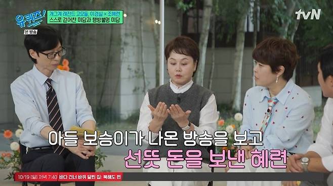 이경실은 아들 손보승을 위해 조혜련이 돈을 보내준 일화를 언급했다.