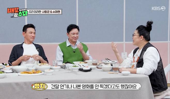 15일 첫 방송된 KBS 2TV '배달왔수다'에는 첫 주문자로 황정민, 정성화, 정상훈이 등장했다.