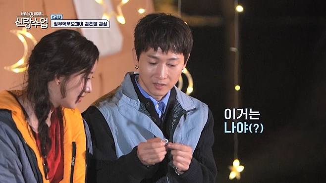 숲속 글램핑장으로 이동한 두 사람은 함께 요리를 준비했다. 오채이는 에그인헬과 밀푀유나베를 만들었고 장우혁은 고기를 구워 건넸다. 오채이는 “누가 나를 위해 이렇게 해준 건 처음”이라며 감동했다. 장우혁은 “앞으로는 내가 해주겠다”고 답했다.
