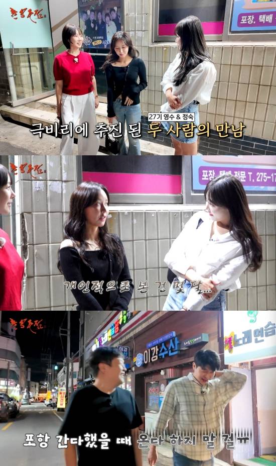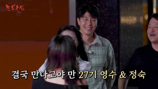 이날 27기 정숙은 포항 편의 스페셜 게스트로 깜짝 등장했다. 27기 영수는 정숙의 등장에 "저기 연차 없다고 하지 않았어?"라며 당황한 표정을 지었다. 이에 정숙은 "퇴근 후에 왔다. 내일 출근한다"고 답했다.