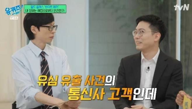 이어 자신도 최근 통신사 해킹 피해를 입었다고 밝혀 눈길을 모았다. 유재석은 "저도 유심 바꿨다"며 "통신사·카드사가 우리 생활에 밀접해 걱정이 더 커지는 것 같다"고 우려를 표했다. 박세준은 "통신사는 기간망 사업이라 국가 안보와 직결되니까 해킹 사고가 나면 파급력이 크다"며 "통신사는 유심의 정보 IMER이라든지, 기기 정보가 유출된 거다. 사용하는 핸드폰이 복제되는 일이 생길 수 있다"고 설명했다.