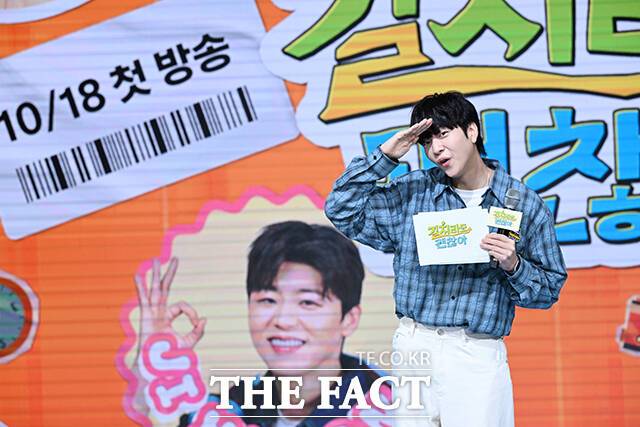 [더팩트ㅣ서예원 기자] 개그맨 유재필이 16일 오전 서울 마포구 상암DMC푸르지오 S-city 쇼킹케이팝센터에서 열린 ENA 새 예능 '길치라도 괜찮아' 제작발표회에 참석해 포즈를 취하고 있다.