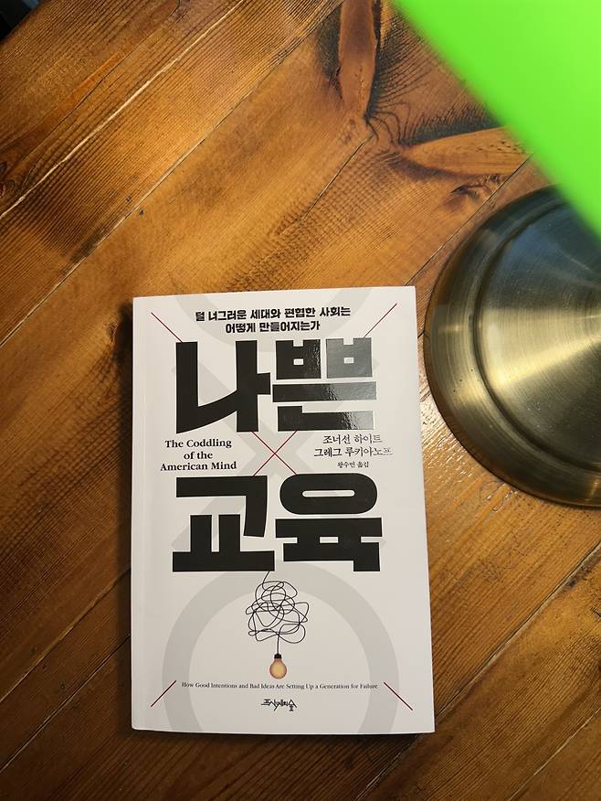조너선 하이트와 그레그 루키아노프의 <나쁜 교육>은 바로 그 '좋은 의도'가 어떻게 한 세대를 약하게 만드는지를 추적한 책이다. 그들은 오늘날의 과도한 '보호'가 오히려 '나약함'을 키운다고 말한다. 흥미로운 것은 '학생이 유약한 것'이 문제가 아니라, '학생을 유약하다고 보는 사회'가 문제라고 짚은 데 있다.