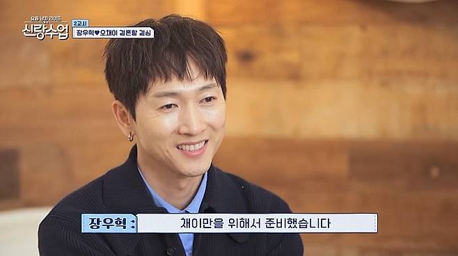 '신랑수업' 장우혁이 16살 연하 배우 오채이에게 '기습 뽀뽀' 선물을 받았다.