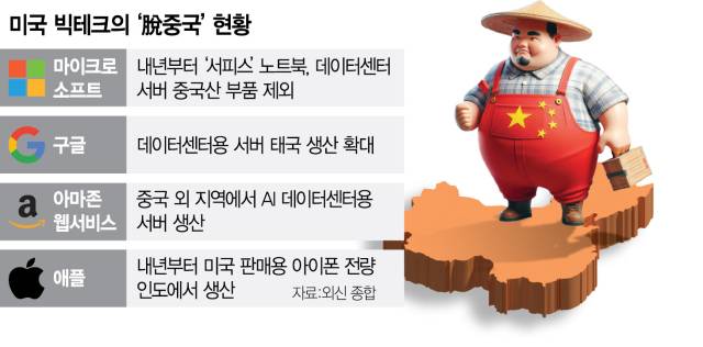 중국産 부품 줄이는 MS···빅테크 '脫중국' 속도