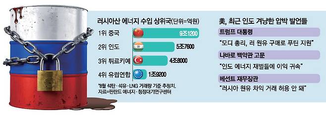 인도는 2022년 러시아·우크라이나 전쟁이 발발한 이후 오히려 대러시아 원유 수입을 크게 늘리며 중국에 이어 2대 수입국이 됐다.