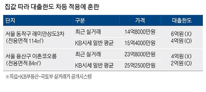 이 같은 일이 현실로 벌어질 위험이 높아 주택 수요자들의 주의가 요구된다. 정부가 수도권 주담대 최대한도를 집값에 따라 차등화하는 규제를 내놨는데, 이 기준이 KB국민은행과 한국감정원 시세에 근거해 이뤄지기 때문이다. 하지만 집주인이나 매수자들이 이를 잘 모르는 경우가 많아 현장에서 혼선이 생길 가능성이 많다.