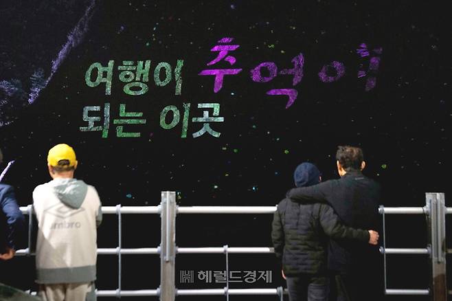 화면에는 울릉도의 사계절 풍경과 주요 관광지, 그리고 ‘오늘도 너라서 빛난다. 추억이 되는 울릉도’라는 문구가 송출되자, 현장을 찾은 주민과 관광객들은 탄성을 지르며 연신 사진을 찍는 모습이 이어졌다.