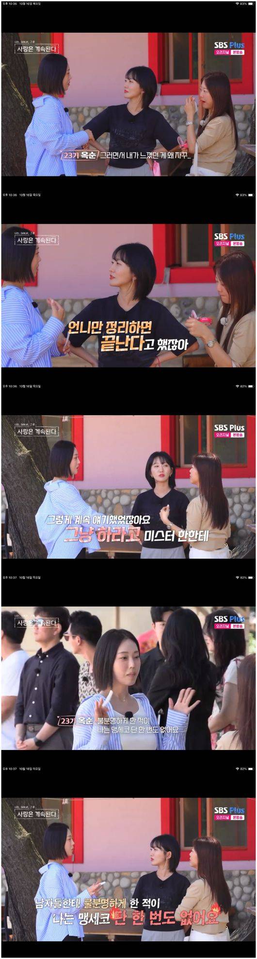 16일 방영한 ENA, SBS Plus 예능 '나는 SOLO, 그 후 사랑은 계속된다'(이하 '나솔사계')에서는 23기 옥순에게 쏠린 미스터 권, 미스터 강, 미스터 한 등의 마음에 23기 순자와 11기 영숙 그리고 24기 옥순까지 언짢은 마음이 지난주 내내 공개됐다.
