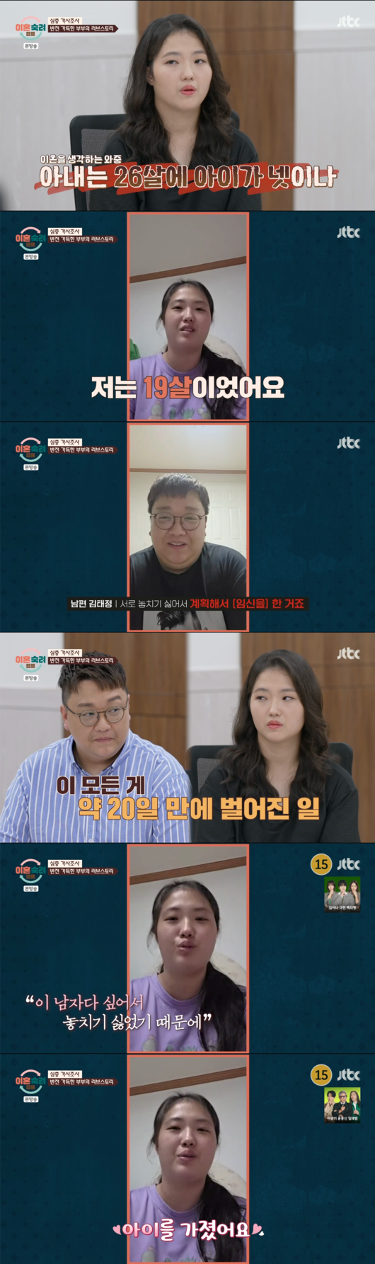 '이혼숙려캠프' 남편이 미성년자 아내와의 초고속 임신 사실을 공개했다.
