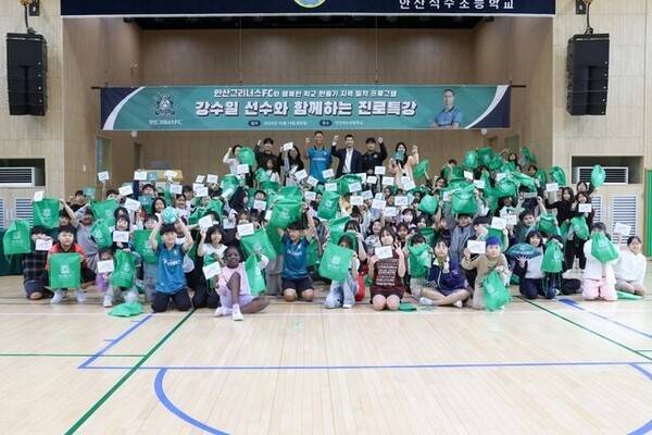 [SPORTALKOREA] 박윤서 기자= 안산그리너스FC(이하 안산)가 지난 14일(화) 오후, 안산시 단원구 소재의 석수초등학교를 방문해 지역 밀착 프로그램 '그린 스쿨(Green School)'의 일환으로 '강수일 선수와 함께하는 진로 특강'을 진행했다.