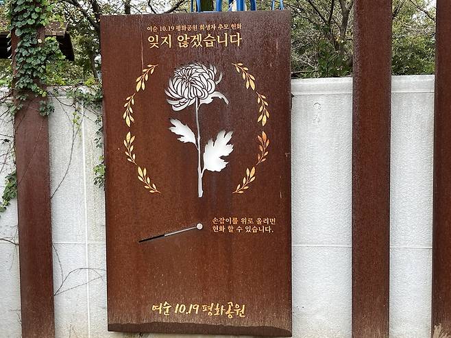 | ▲ 여순10·19평화공원 희생자 추모 헌화 철판 시설물 |