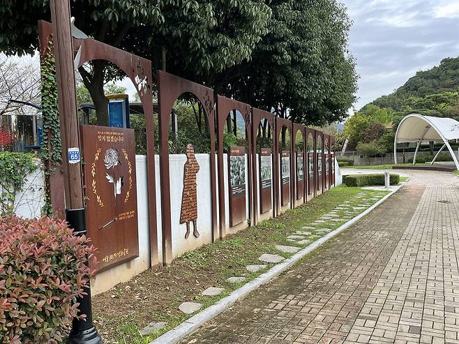 | ▲ 순천 조곡동 여순10·19평화공원 희생자 추모 헌화 철판 시설물 |