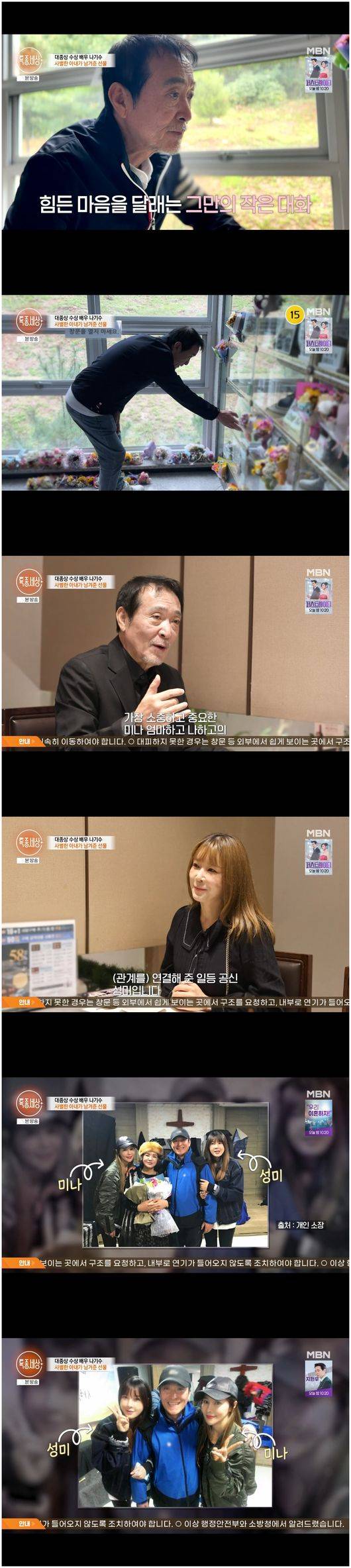쓰러진 모친을 발견한 미나는 구급차를 불렀지만 이미 당시 모친은 심정지 상태였다. 나기수는 “너무 놀라고 당황해서 말을 잃었다”라며 그때의 황망함을 여전히 잊지 못했다.