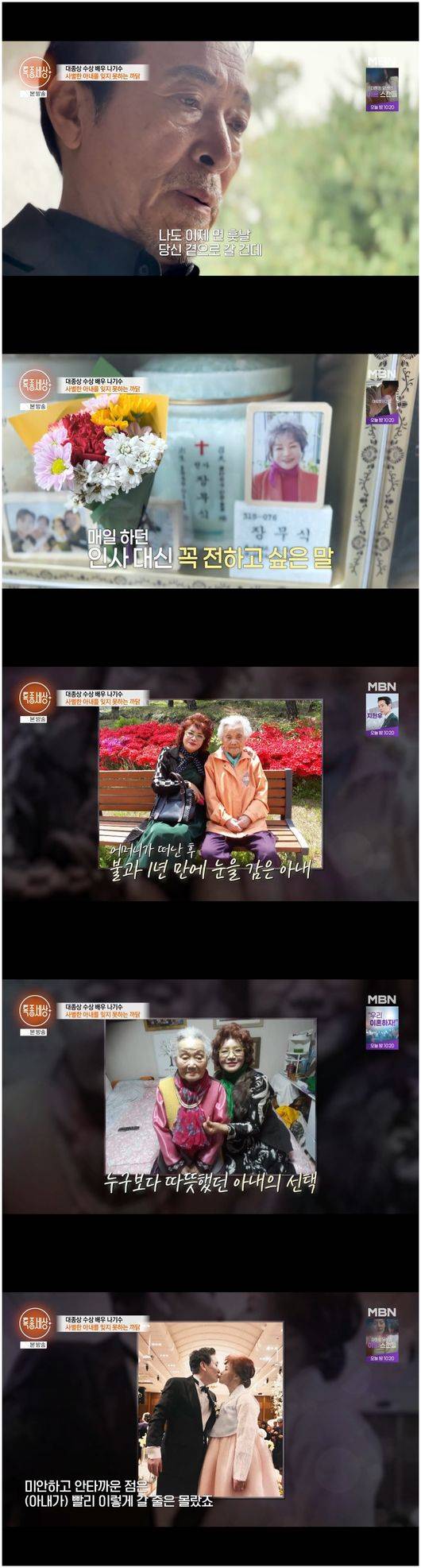 이어 아내의 납골당에 찾은 나기수는 “나도 이제 먼 훗날 당신을 만나러 갈 건데 그때 만나자고. 난 또 열심히 살아있는 동안 열심히 일하고 잘 살다 갈 테니까 잘 있어라”라고 말하며 끊어지지 않은 사랑을 다짐했다./osen_jin0310@osen.co.kr
