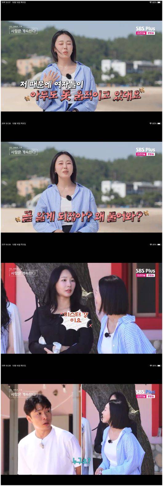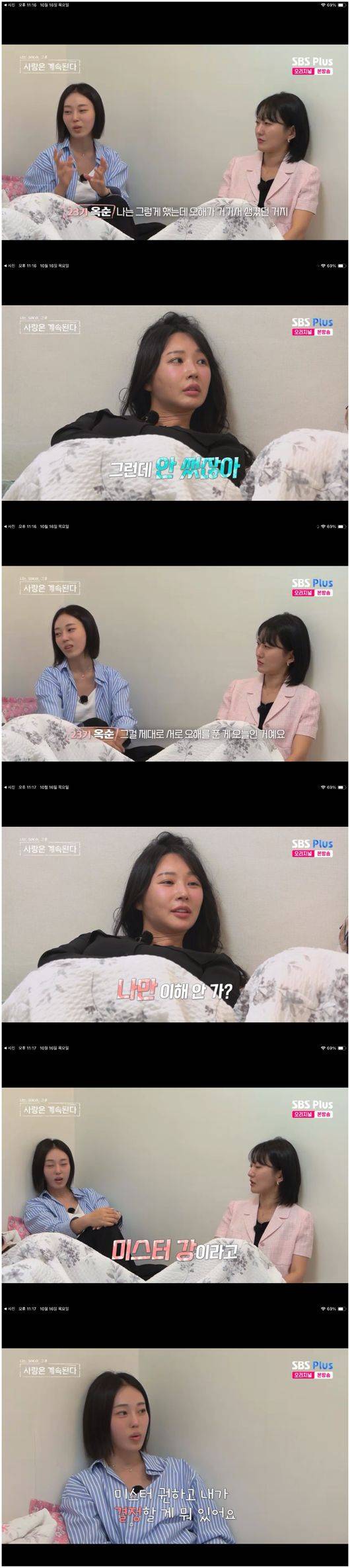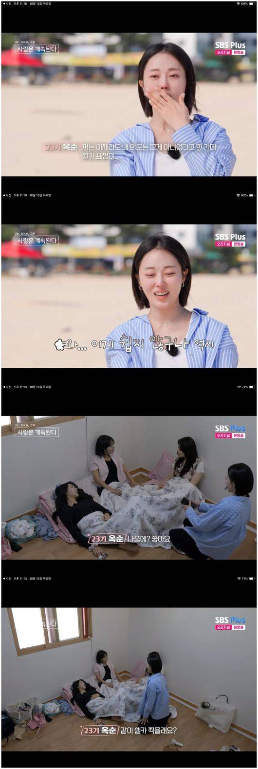 16일 방영한 ENA, SBS Plus 예능 ‘나는 SOLO, 그 후 사랑은 계속된다’(이하 ‘나솔사계’)에서는 최종 선택 전 마지막 데이트를 앞둔 '바다에 마음 외치기'가 시작되었다. 여성, 남성 모두 나열한 채 원하는 사람이 나가서 속마음을 밝히는 시간, 23기 옥순은 괴로운 시간을 견디고 있었다.