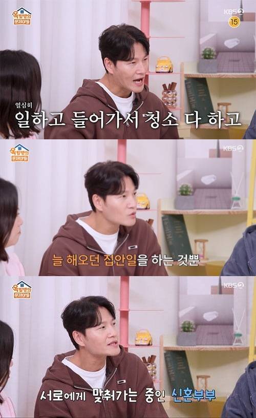 이어 김종국은 "혼자 오래 살았지 않냐. 똑같이 사는데 한 사람 늘었다고 '이건 네가 해라' 하긴 애매하더라. 내가 하던 건 그대로 한다"고 덧붙였다. 홍진경은 김종국에게 "피부가 좋아졌다. 혈색이 좋아졌다"고 말했다. 김숙은 "사랑받네"라고 인정했다.