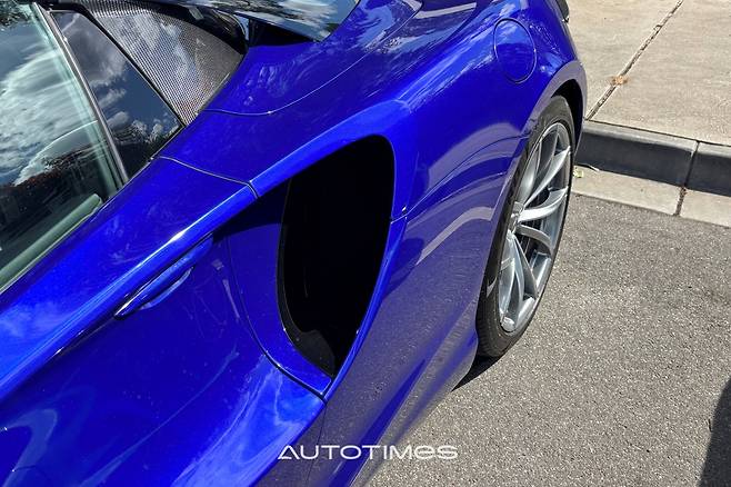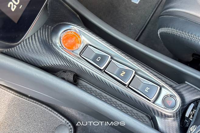 센터 터널에는 버튼식 변속 레버가 탑재돼 있고 작은 수납함, USB 충전 포트 등이 알차게 마련돼 있다. 낮은 시트포지션과 누워 있는 A필러, 좁은 발 공간까지 레이스카의 구성요소를 찾아 보는 것도 무척 흥미롭다. 사람들을 주목 시키는 버터플라이 도어는 덤이다.