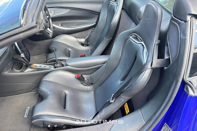 실내는 오로지 드라이빙에 초점을 맞췄다. 대부분의 기능이 운전자 중심이며 최대한 간결하다. 아무런 버튼이 없는 심플한 스티어링휠이 대표적이다. 조작을 하는 대부분의 기능은 뒤쪽 컬럼식 레버를 통해 다룰 수 있다. 물론 두툼한 패들 시프트도 기본이다. 역동적으로 운전 할 때는 오로지 조향의 기능만 완벽히 수행해야 한다는 맥라렌의 의지가 돋보인다.