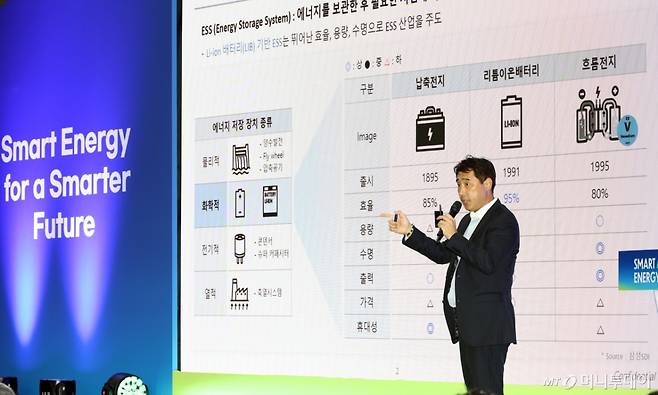 손동규 삼성SDI ESS상품기획그룹장이 17일 서울 강남구 코엑스에서 열린 '스마트에너지플러스(SEP) 2025' 차세대 에너지 패러다임 : 배터리에서 전력망까지 컨퍼런스에서 '재생에너지와 계통유연성 확보를 위한 BESS 역할과 필요 기술'에 대해 발표하고 있다.