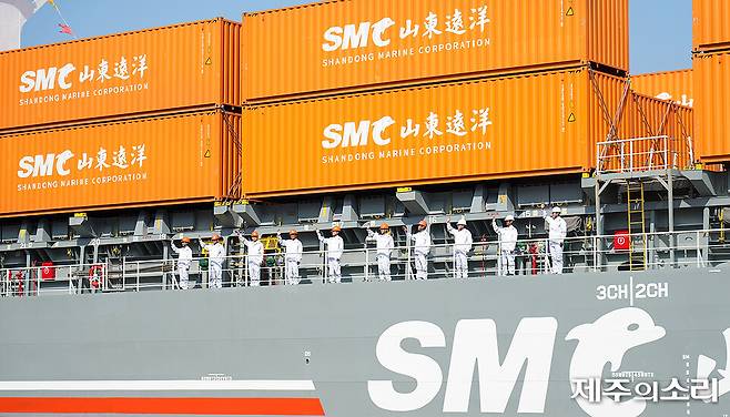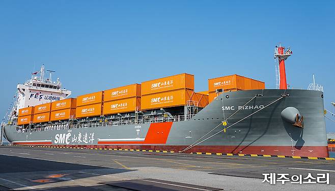 17일 제주특별자치도에 따르면 어제(16일) 중국 칭다오항을 출발한 컨테이너선 'SMC 르자오호'가 내일 오전 9시30분쯤 제주항 10부두에 도착한다.