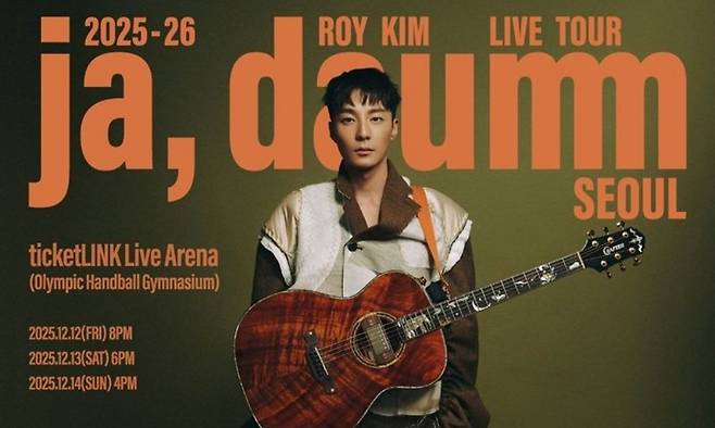 로이킴은 오는 12월 12일부터 14일까지 3일간, 서울 송파구 올림픽공원 티켓링크 라이브 아레나(올림픽 핸드볼경기장)에서 단독 콘서트 '2025-26 로이킴 LIVE TOUR [ja, daumm]'을 개최한다.