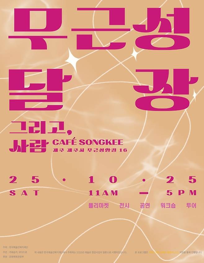 25일 오전 11시부터 오후 5시까지, 제주시 무근성안길 16의 카페 송키와 탑동회관 일대에서는 ‘무근성 달장 with 아트매핑–그리고 사람’이 열립니다.