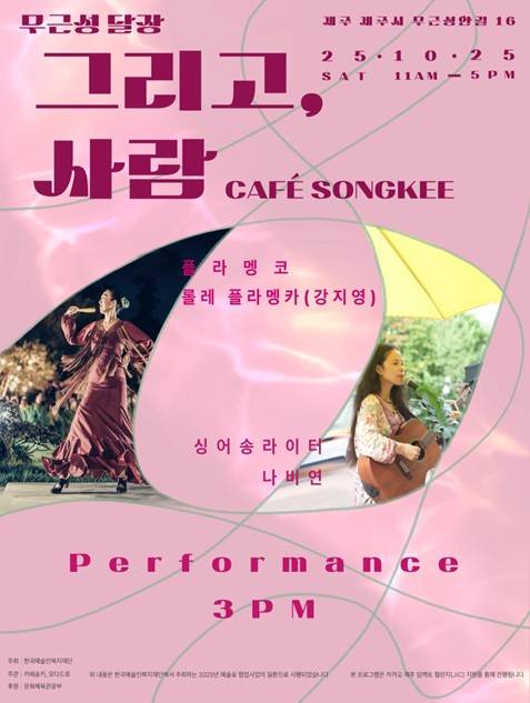 오후 3시, 카페 송키 야외무대에서는 플라멩코 무용가 강지영(롤레 플라멩카)과 시인이자 싱어송라이터 나비연의 공연이 열립니다.