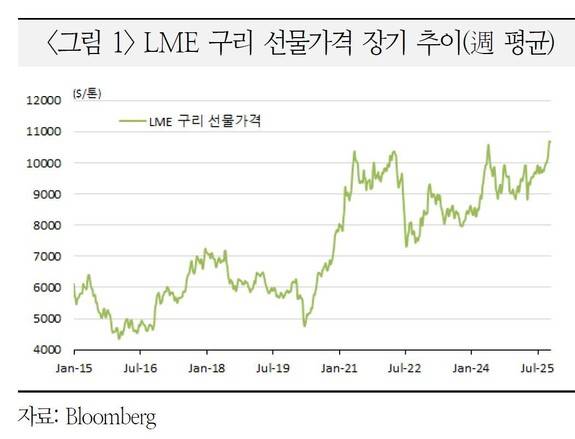 최근의 구리가격 강세는 인도네시아·칠레·민주공코 등 세계 주요 광산에서의 잇따른 공급차질 등 공급 측 요인과 더불어 미 연방준비제도의 추가 금리인하 기대감, 달러 약세 등에 따른 것이다. 여기에 수요 쪽에서도 에너지 전환, AI 데이터센터, 전기차 등에서의 탄탄한 대규모 수요 전망까지 가세하고 있다.