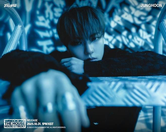 그룹 싸이커스(Xikers)가 오는 31일 미니 6집 'HOUSE OF TRICKY : WRECKING THE HOUSE' 발매를 앞두고 X 버전 콘셉트 포스터를 공개했다.