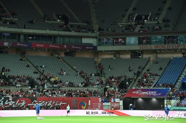 서울월드컵경기장에서 열린 A매치에 관중이 3만명이 되지 않은 건 2015년 10월 13일 자메이카와의 평가전(2만8105명) 이후 10년 만이다.