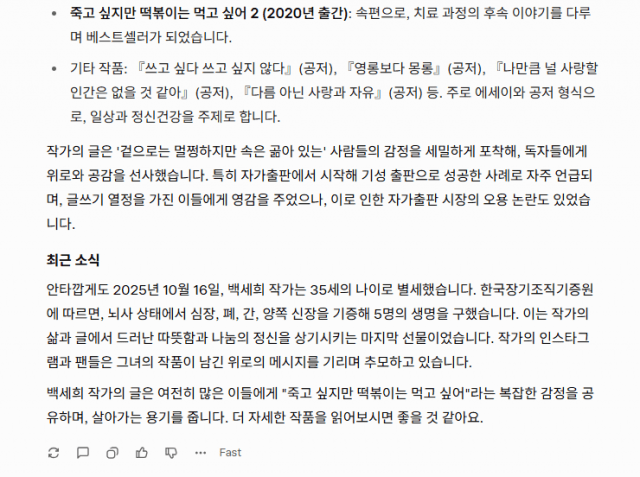 [Q&AI] ‘죽고 싶지만 떡볶이는 먹고 싶어’ 작가 별세… 누구?