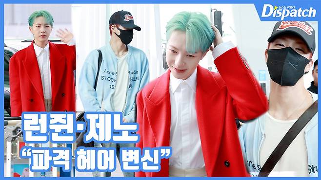 이날 런쥔과 제노는 각각 초록색과 빨간색으로 머리를 염색해 색다른 매력을 뽐냈다.