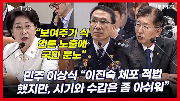 이어 질의에 나선 이상식 더불어민주당 의원은 “결론적으로 말씀드리면 이진숙 체포는 적법했다. 직무대행님 그렇죠?”라며 “다만 아쉬운 것은 집행 시기와 방식 등에 있어서 특히 수갑을 채운 부분은 좀 아쉬운 면이 있다”고 지적했다. 이상식 의원은 “제가 보기에 신속하게 추석 연휴 전에 집행한 것은 두 달 후에 공소시효가 만료되고 또 수사의 가치 중 하나가 신속이니까 그렇게 했다고 치더라도 수갑은 조금은 문제가 있어 보인다”고 덧붙였다.