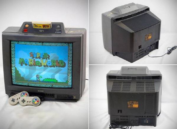 검떠: 1990년 12월 5일에 출시된 역사적인 기기. TV와 게임기가 융합된 샤프 SF 1 입니다. 기본적으로 샤프에서 개발한 TV에 슈퍼패미콤이 별도로 설계되어 얹혀져 있는 구조인데요, 14인치와 20인치 버전이 있습니다.