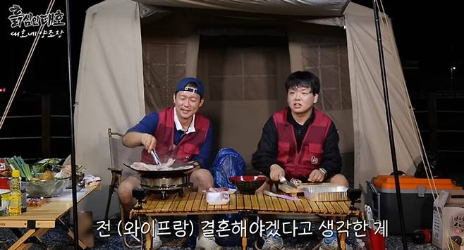 저녁 준비 도중 김대호는 곽튜브에게 "연애는 몇 번 해봤냐 지금 아내가 첫사랑이냐"라고 물었다. 잠시 고민하던 곽튜브는 "사랑이란 걸 해본 적이 없다"고 재치 있게 답해 웃음을 자아냈다. 이어 곽튜브가 "형님은 몇 번 해보셨냐"고 되묻자 김대호는 "나는 한 4~5번 정도 했다. 서른 후반쯤 되면 결혼이란 생각이 점점 옅어진다. 굳이 해야 하나 싶더라. 그러다 보니 연애도 잘 안되더라"고 솔직하게 고백했다.