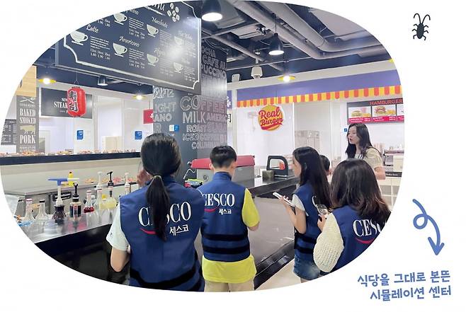 세스코 본사에는 흔히 볼 수 있는 식당과 식품 공장을 본뜬 시뮬레이션 센터가 있다. 실제 식당이라고 착각할 만큼 비슷했다. 세스코 직원들이 교육받는 곳이다. 해설사님이 시뮬레이션 센터에서 위생 관리가 잘못된 곳을 찾아보라고 하셨다. 처음엔 그냥 신기하게 보고만 있었는데, 설거지가 안 되어 있거나 형광등 보호 커버가 떨어져 있는 것 등이 보였다. 그런 환경에서 해충이 생기기 쉽다며 상한 음식을 그냥 두면 안 된다고 했다.