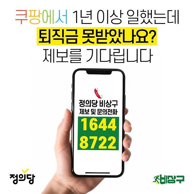 | ▲ 정의당 비상구의 쿠팡 퇴직금 당사자 제보 관련 웹자보 정의당 비상구의 쿠팡 퇴직금 당사자 제보 관련 웹자보 |