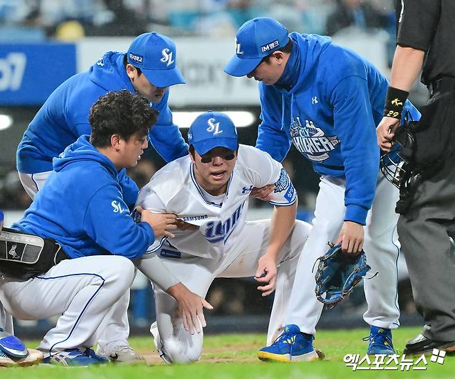 삼성 박진만 감독은 3차전 종료 뒤 "김영웅 선수 상태는 조금 더 점검해야 한다. 허리 쪽인데 부상 당시보단 지금 경과가 좋아지긴 했다. 내일 일어나서 허리 상태 다시 한 번 더 봐야 한다"라고 밝혔다.