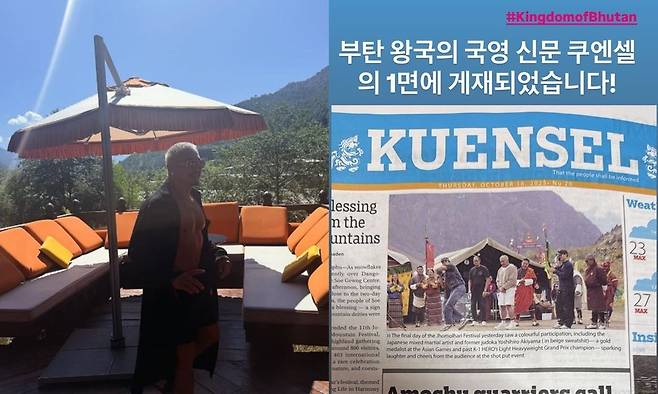 앞서 추성훈은 자신의 모습이 담긴 신문 사진과 함께 "부탄 왕국의 국영 신문 1면에 게재됐다"는 소식을 알리기도 했다.