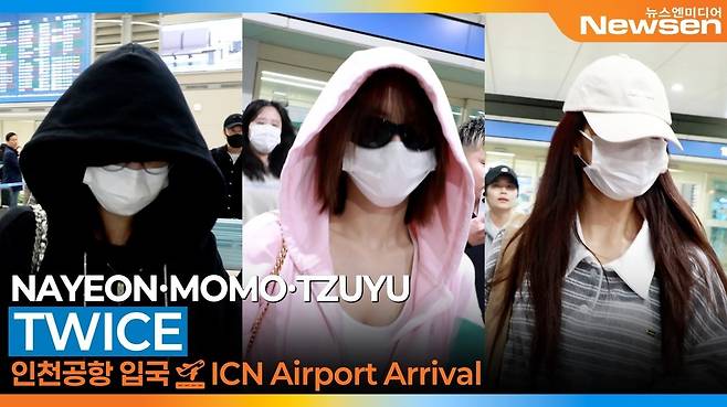 가수 트와이스 멤버 나연, 모모, 지효, 쯔위가 10월 17일 미국 뉴욕에서 개최한 '빅토리아 시크릿 패션쇼 2025'(VSFS2025) 스페셜 공연 일정을 마치고 인천시 중구 인천국제공항을 통해 입국하고 있다.