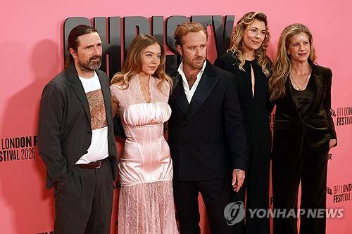 epa12461366 (L-R) Australian director David Michod, US actors Sydney Sweeney and Ben Foster, Australian screenwriter Mirrah Foulkes, and US producer Kerry Kohansky-Roberts attend the 'Christy' gala screening at the BFI London Film Festival, in London, Britain, 17 October 2025. The 69th edition of the annual film festival runs from 08 to 19 October 2025. EPA/NEIL HALL