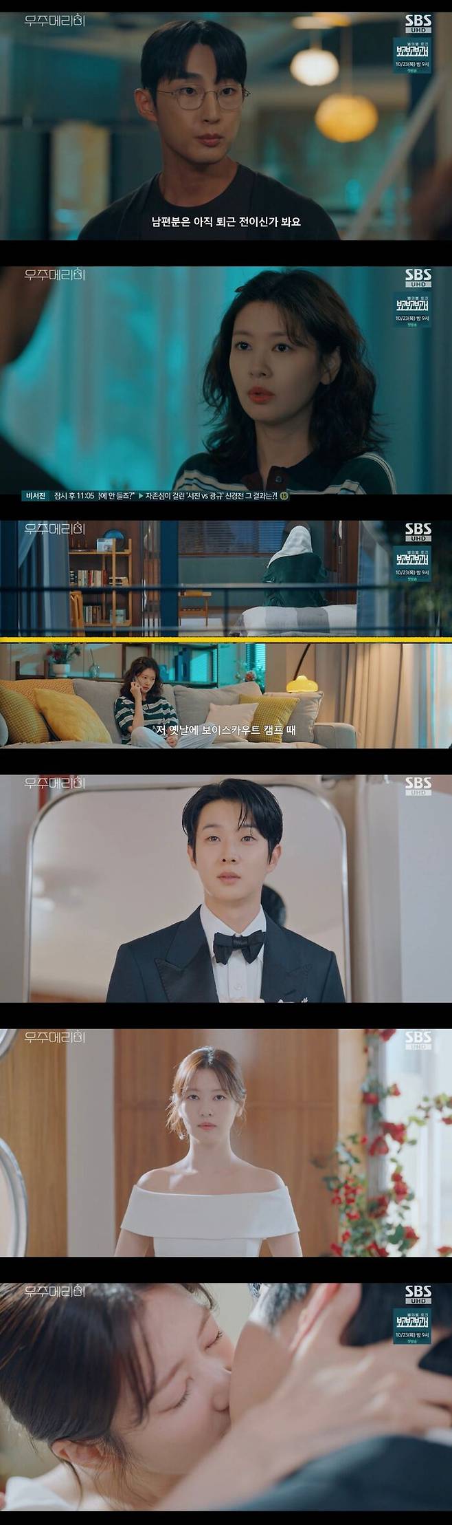 17일 방송된 SBS 금토 드라마 '우주메리미'에서는 서로의 관계가 들킬 위험에 처한 김우주와 유메리의 모습이 그려졌다.