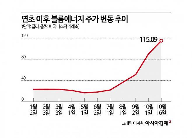 미국 나스닥 시장에서 블룸에너지의 주가는 지난 16일(현지시간) 115.09달러를 기록했다. 연초 보다는 392.47% 급등했다. 올해 7월까지 20달러대 초반에서 부진한 모습을 보였던 블룸에너지의 주가는 8월부터 크게 오르기 시작했다. 대형 기술주들의 AI 데이터센터 전력수급에 연료전지가 필수재가 될 것으로 기대되면서 투자자들의 관심이 집중됐다.
