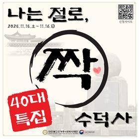 대한불교조계종사회복지재단은 다음 달 15∼16일 충남 예산군 소재 수덕사에서 미혼 남녀 템플스테이 '나는 절로'를 40대 특집으로 진행한다고 14일 밝혔습니다.