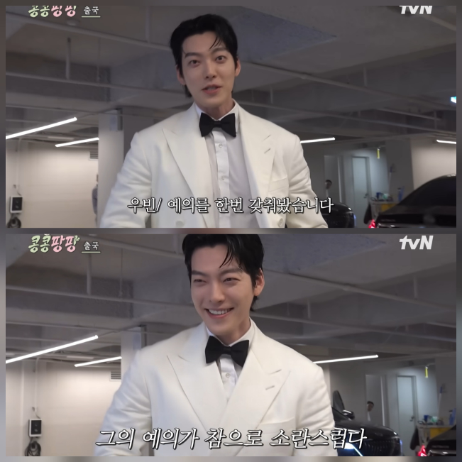 ‘콩콩팡팡’ 김우빈, 공항에 정장 차림으로 등장… 이광수 “이건 벌칙이야” 폭소