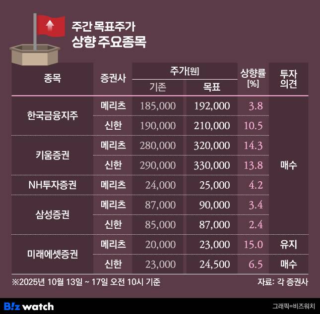 [청기홍기]코스피 랠리에 증권업 훈풍…"한국금융지주·키움증권 목표가↑"