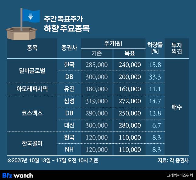 달바글로벌·코스맥스·한국콜마 목표가 하향
